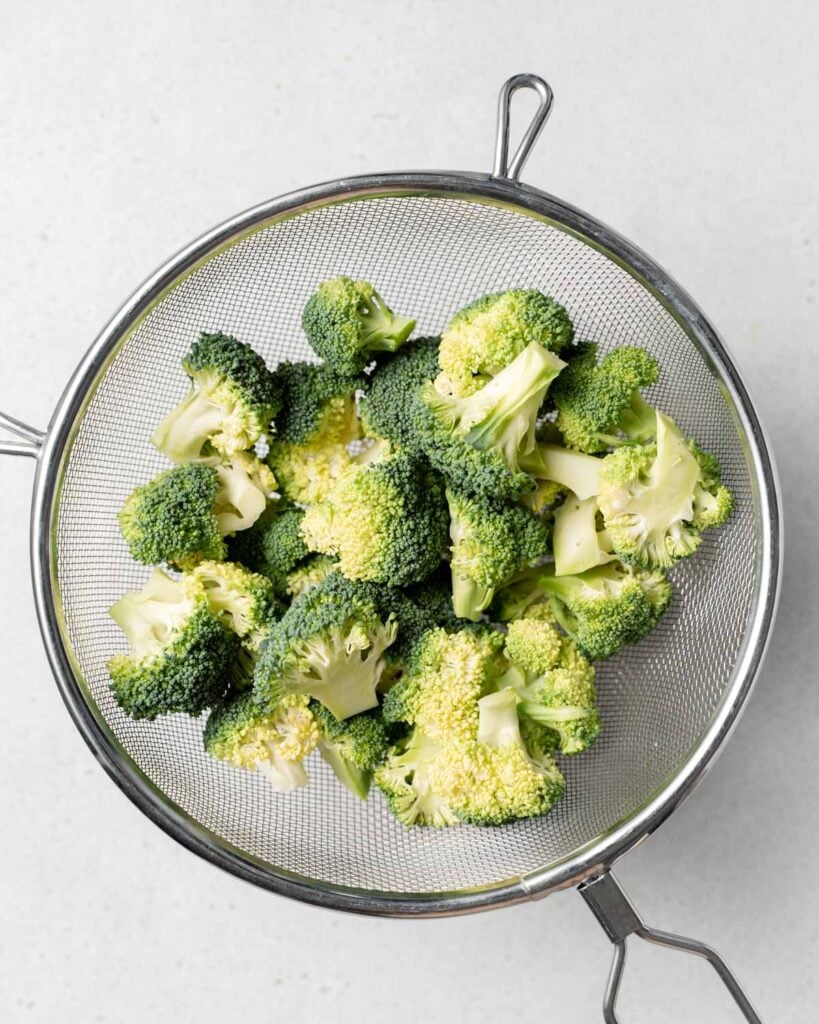 You may blanch broccoli which is perfect to serve with cold salads, pasta salads, veggie platters, in casseroles, and other recipes like broccoli chicken fritters or garden veggie frittatas. To blanch your broccoli, do the following: