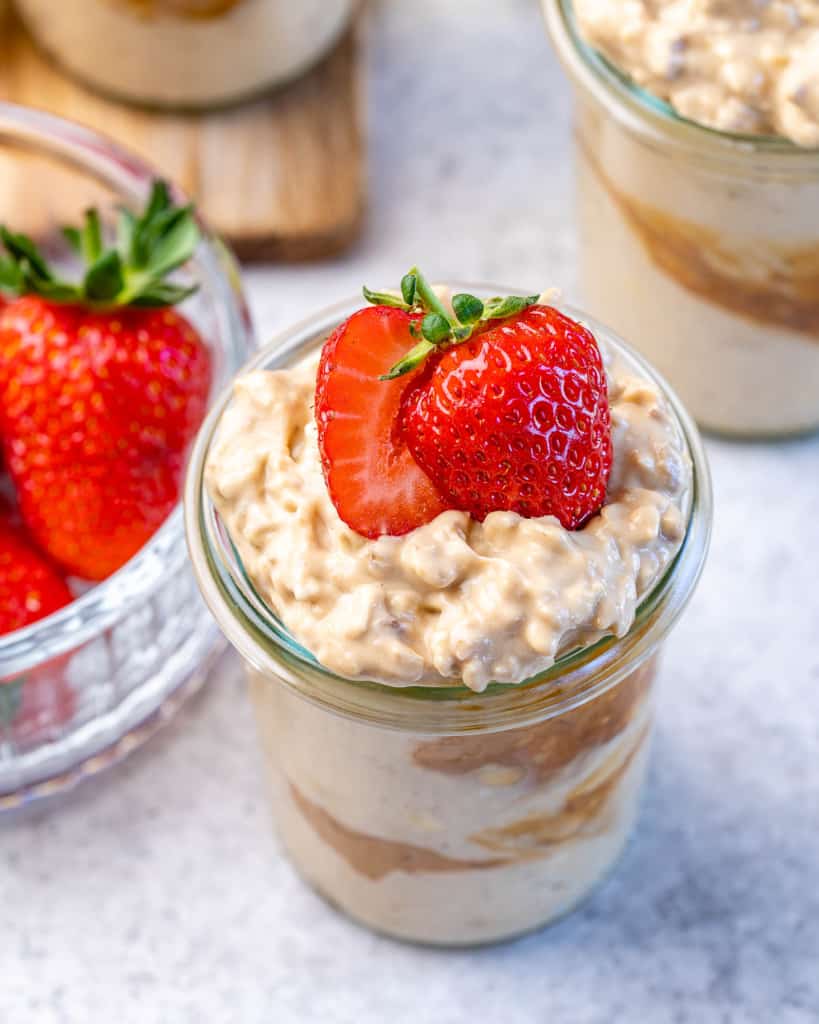 - Delicious: what’s not to love about creamy-tasting peanut butter overnight oats. Topped with fresh strawberries for a perfect finish.