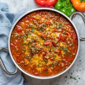Love stuffed bell peppers but don’t feel like going through the process of making them? Then make this healthy stuffed pepper soup recipe and enjoy a filling and tasty dinner without missing out on any flavor! The same great taste! Plus they are so easy to make without dealing with all the fuss that comes with the classic stuffed pepper recipe that requires you waiting for it to bake!